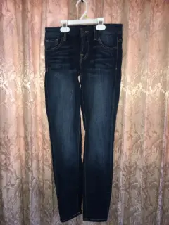 Pantalón jeans marca Guess, skinny talla 24, color azul, tiro medio.