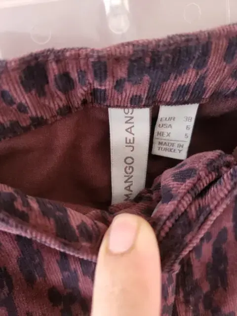 Pantalon MANGO de pana animal print. Pantalon de pana talla 5 corte slim bolsas traseras la pana es suave no es rígida y tampoco tan gruesa, esta divino. Pregunta tus dudas.Te regalo $100 en tu primer compra en shoppiland.com con el siguiente código: kowiprofyAgw