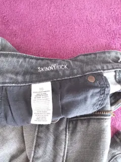 Pantalón mezclilla acampanado T 10. Pantalón de mezclilla color negro deslavado, así es el color.Es ligeramente acampanado con tiro altoDe uso pero en perfecto estado, sin ningun detalle