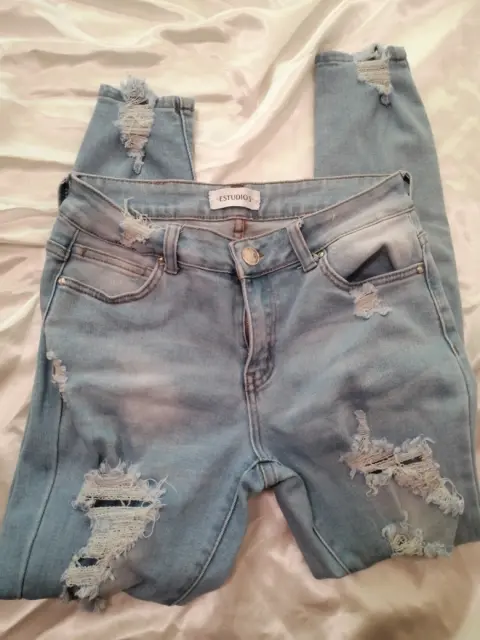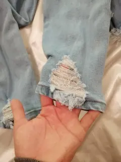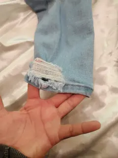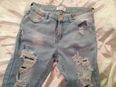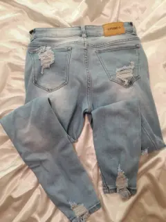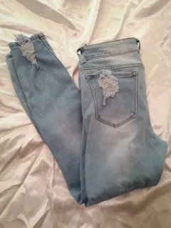 Pantalón rasgado super padreEs rasgado pero tiene mezclilla de forro en pastes donde esta rasgadoTalla 7Azul clarouna sola puesta