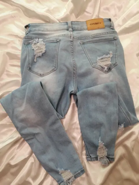 Pantalón mezclilla clara. Pantalón rasgado super padreEs rasgado pero tiene mezclilla de forro en pastes donde esta rasgadoTalla 7Azul clarouna sola puesta