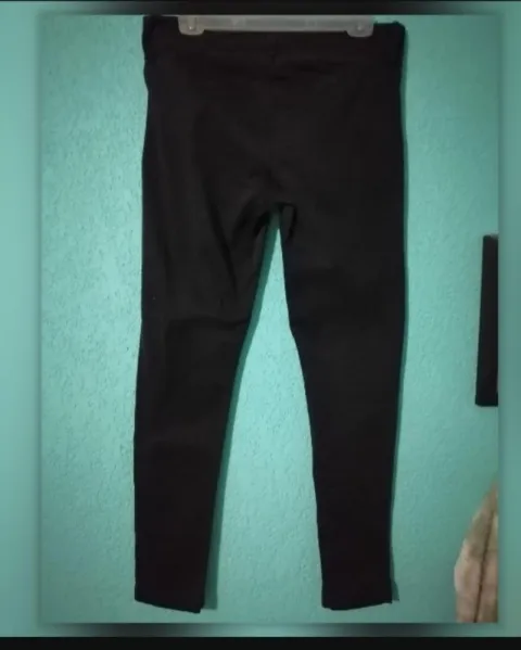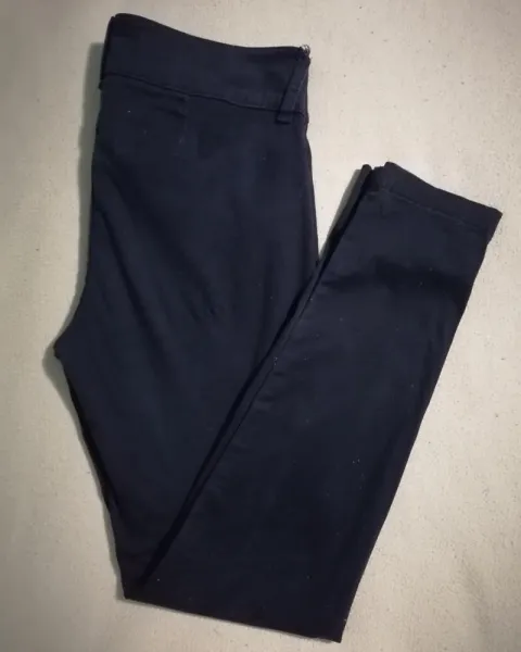 Pantalón de cintura alta negro Casual, entubado. Las medidas del pantalón sonTalla: 31. Algodón stretch.MEDIDAS DE LA PRENDA :Cintura: 42 cm. Cadera: 50 cm. Largo tiro (frente): 27 cm. Largo tiro (trasero): 35 cm.Largo total: 102 cm. Largo pierna interior: 77 cm. Ancho pata (medido en el tobillo): 14 cm