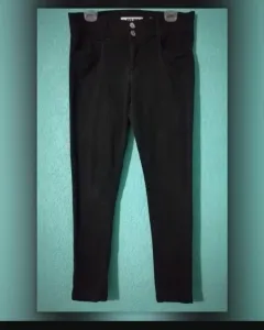 Pantalón negro SXY jeans. Pantalón de cintura alta negro Casual, entubado. Las medidas del pantalón sonTalla: 31. Algodón stretch.MEDIDAS DE LA PRENDA :Cintura: 42 cm. Cadera: 50 cm. Largo tiro (frente): 27 cm. Largo tiro (trasero): 35 cm.Largo total: 102 cm. Largo pierna interior: 77 cm. Ancho pata (medido en el tobillo): 14 cm