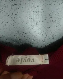 Pantalón semi acampanado talla M, color vino, tela poliéster y elastano