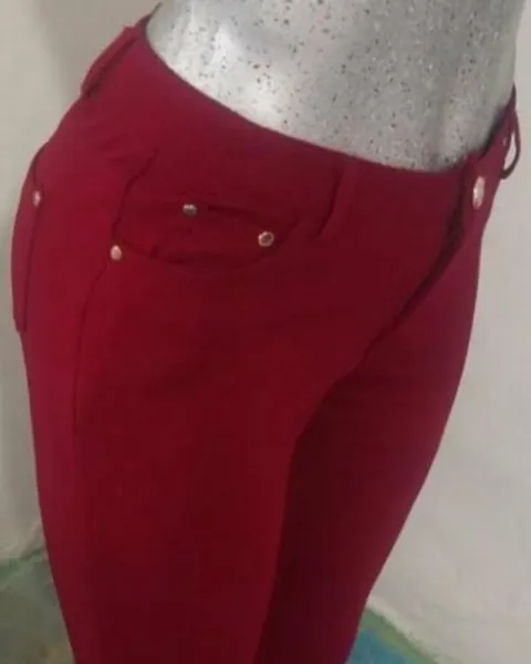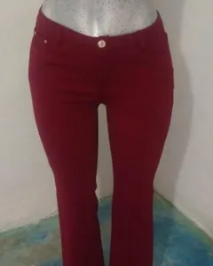 Pantalón semi acampanado. Pantalón semi acampanado talla M, color vino, tela poliéster y elastano
