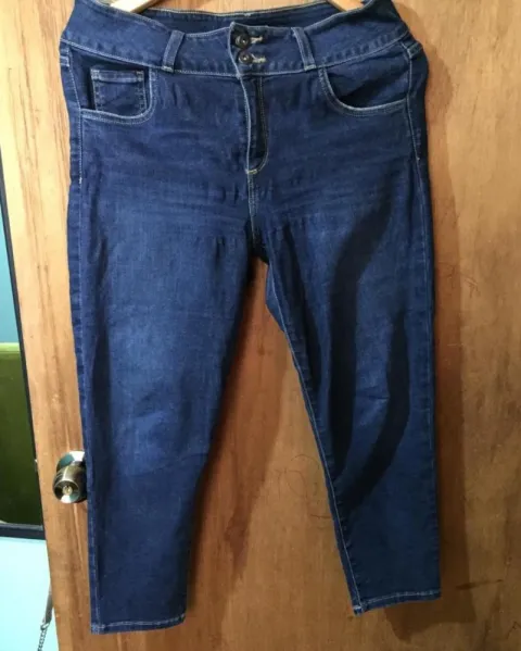 Pantalón de mezclilla color azul oscuro de la marca sexy jeans talla 32 tipo capri cintura media
