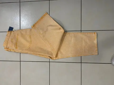 Pantalón tipo mom jeans Ancho mezclilla color amarillo naranja Nuevo Súper bello