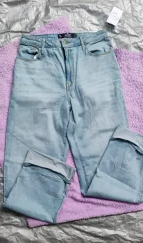 Pantalon boyfriend, tiro alto, mezclilla azul claro, American eagle, Talla 9.