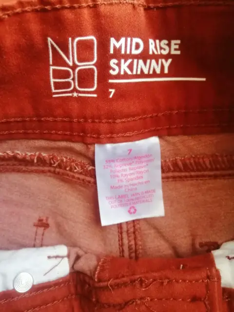 Bonito pantalón color ladrillo tipo pana o terciopelo talla 7 skinny jeans en excelente estado