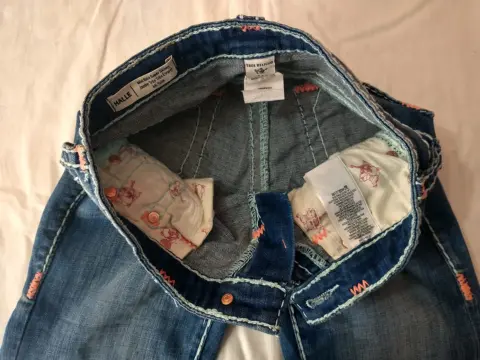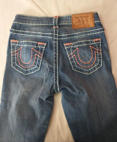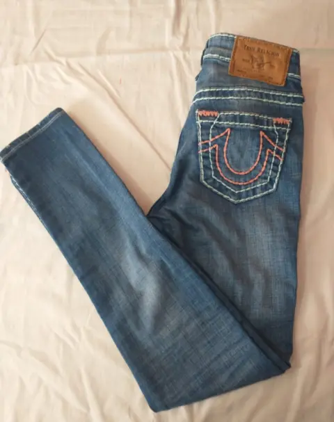 Pantalón true religión. Padrísimos jeans super skinny,, STRECH, con costuras color coral,, cómo nuevos, talla 24