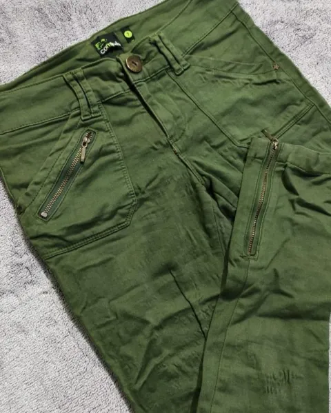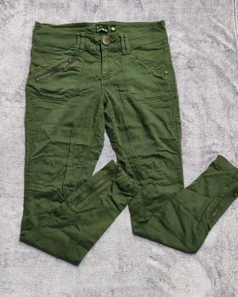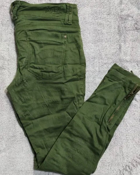Pantalon verde militar talla 5 max 7, con detalle de cierre en la parte de abajo. Sin detalles. Medidas 36cm cintura y 20 cm del tiro.
