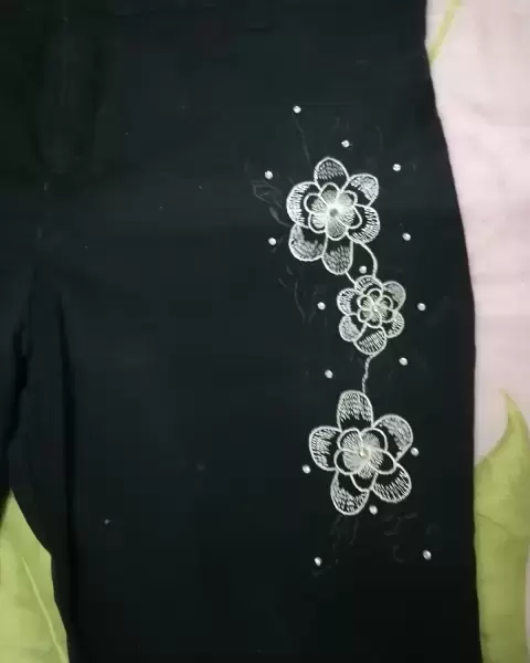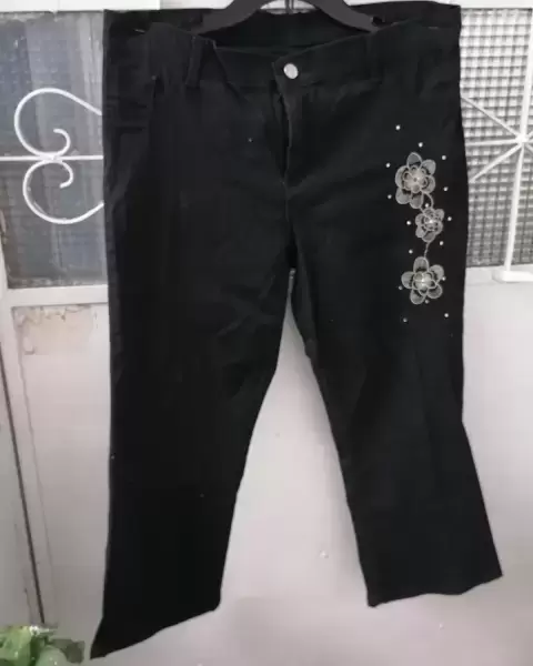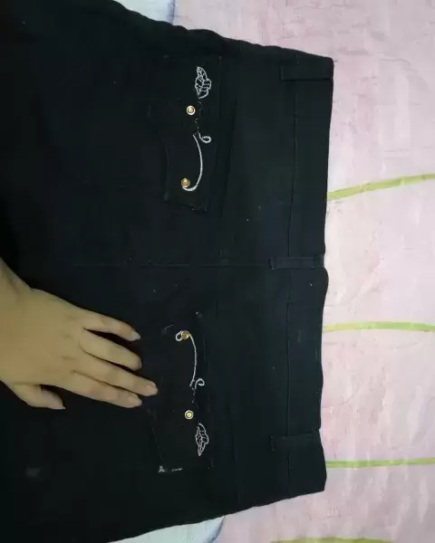 Pescador de mezclilla negroTrae bolsas en la parte de atras unicamente, las bolsas de enfrente son simuladasTalla: 38Medidas: *Cintura 43 cmLargo 86 cmBordado en la piernaCupón: JanMoPBn0H