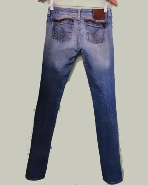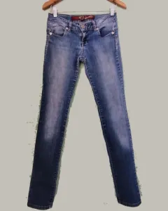 Pantalón de mezclilla, altura a la cadera y entubado, estilo deslavado. Tiene bolsillos a los costados y en la parte de atrás.TALLA 2. Detalle de costura en foto 5, no afecta a su uso.