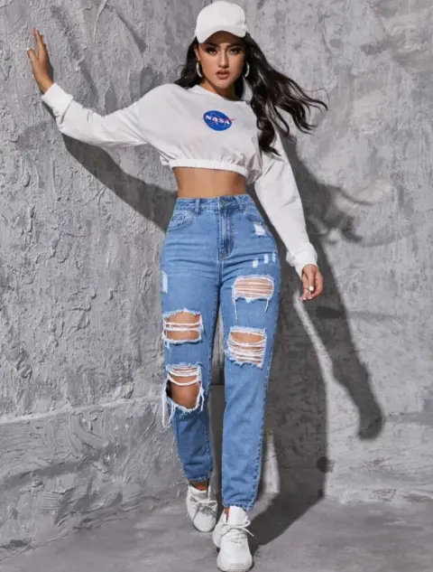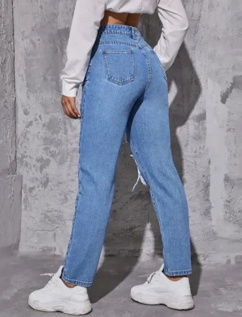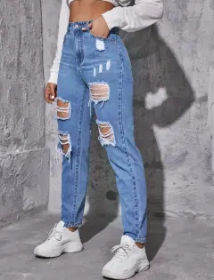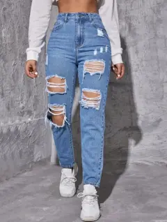 SHEIN EZwear Jeans cónicos desgarro crudo. Jeans azules con desgarro. Las medidas se encuentran en las imágenes. Excelente calidad.