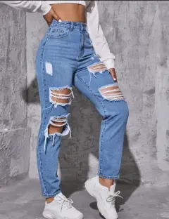 Jeans azules con desgarro. Las medidas se encuentran en las imágenes. Excelente calidad.