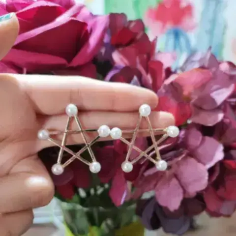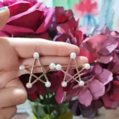 *2 por $200 compra estos aretes y llévate otro producto de mi muro con la misma promoción por $200 y aprovecha el envío gratis!!*Aretes en forma de estrellas doradas con perlas sintéticas en las puntas.*Material: Aleaciones
