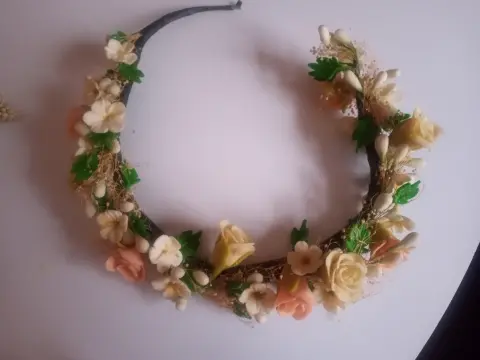 Excelentes artículos para boda de día: corona, lazo, ramo y rosario súper bonito hecho en migajón!