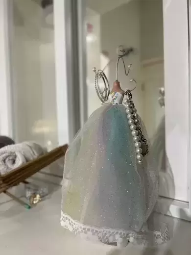 Hermoso Alajero con vestido de tul. Perfecto para el tocador, muy femenino.