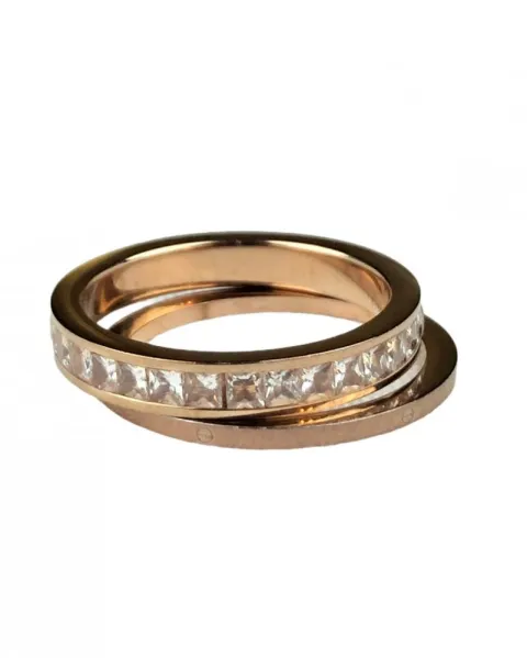 Alianza en acero inoxidable, con cristales incrustados en tono bronce del No. 8.