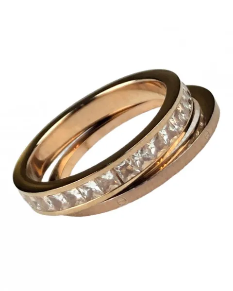 Alianza de acero inoxidable. Alianza en acero inoxidable, con cristales incrustados en tono bronce del No. 8.