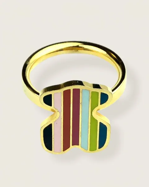 Anillo colours. Anillo con forma de oso en colores, de acero inoxidable no se despinta ni mancha, es del No. 8. 🤩👌