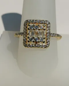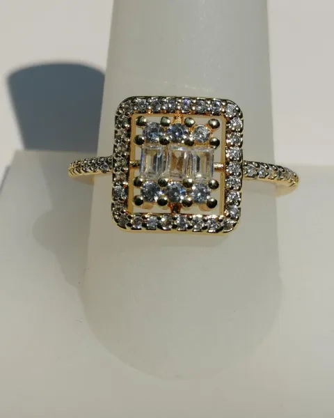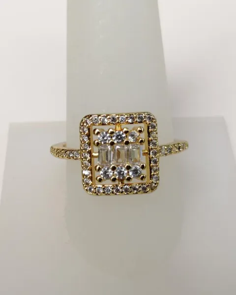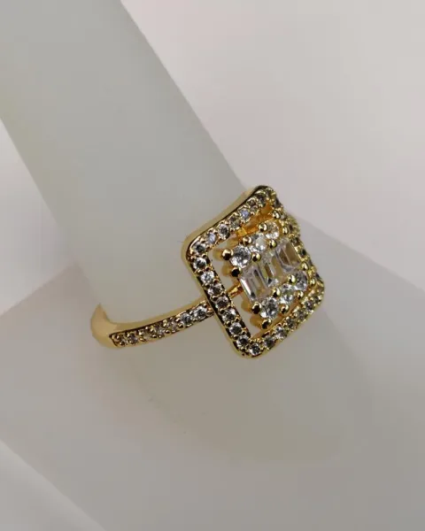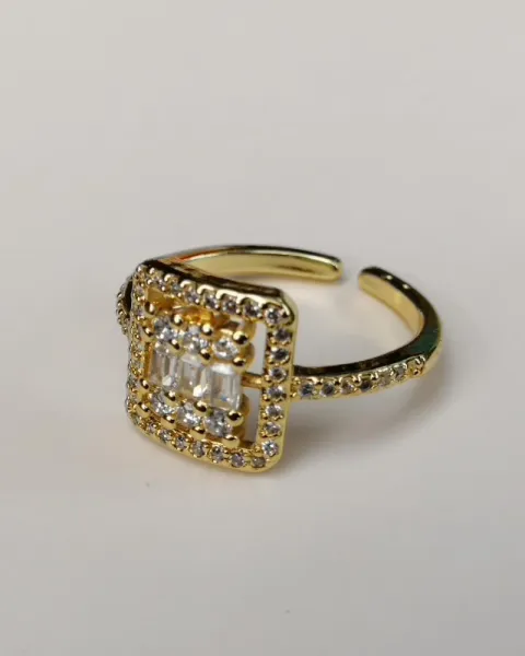 Anillo Cuadrado Brillantes. Anillo ajustable de oro laminado con pedrería. Queda de talla 6 a talla 9