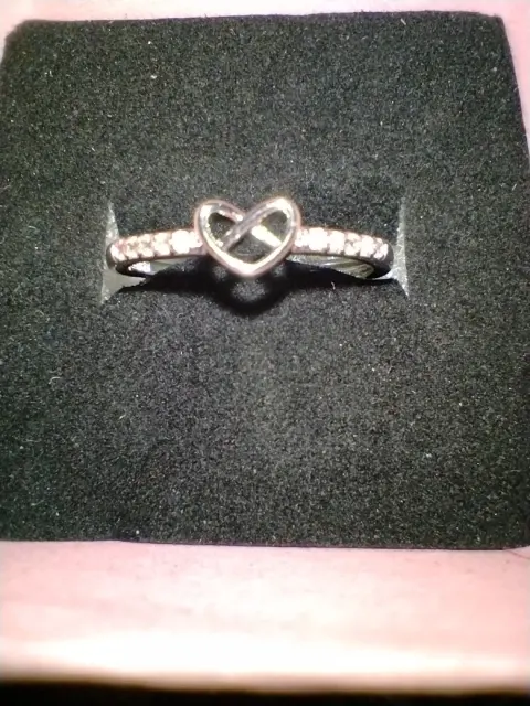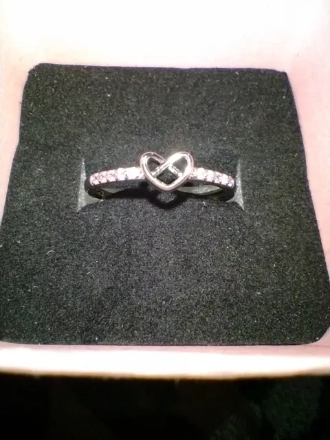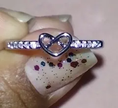 Hermoso anillo se corazón infinito con circonias alrededor simbolo de amor infinito ♾️ baño de plata anillo ajustable delicado y precioso