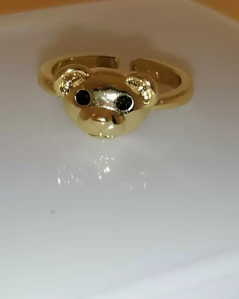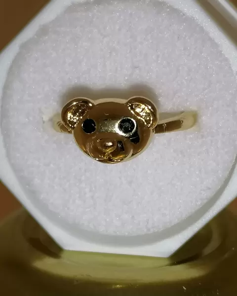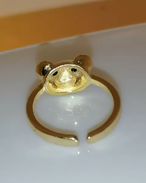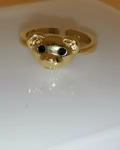Lindo anillo ajustable con forma de ositos, sus ojos son circonias en color negro, elaborado de oro laminado, esta super lindo.