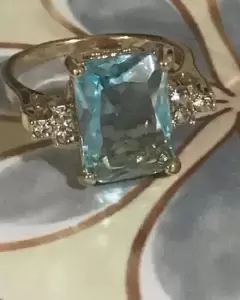 Anillo chapa de oro con piedra natural aguamarina y zirconias, talla 9Mx a estrenar con etiqueta. No acepto pagos dé Oxxo. Solo transferencias