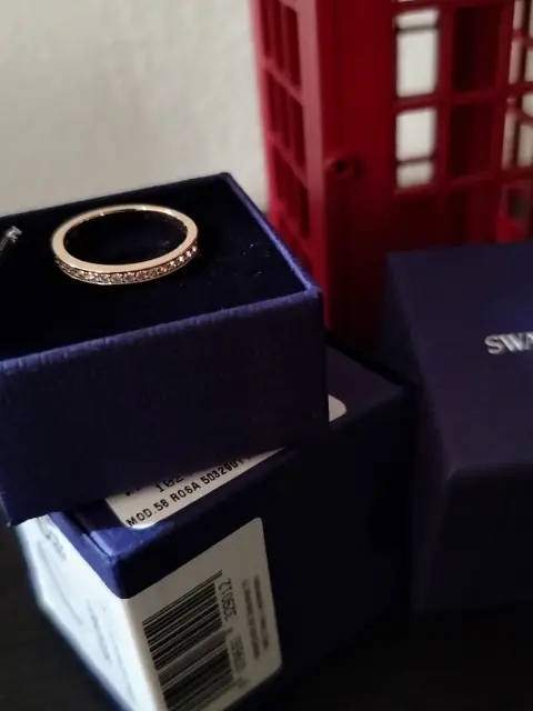 Anillo Swarovski Rare Cristal, Hermoso, esta churumbela de fina silueta cuidadosamente diseñada cuenta con incrustaciones de Swarovski alrededor de media banda, bañada en Rodio, su reluciente estilo será ideal como un obsequio para celebrar su aniversario, cumpleaños o cualquier ocasión especial,mientras la banda de una simplicidad llena de elegancia es perfecta para complementar tus atuendos favoritos. Solo este anillo Swarovski cristal adornará tus manos destacando su especial bellezaColor / RosadoAcabado / PaveMaterial / RodioTipo de Gema /SwarovskiProducto/ ChurumbelaHecho en AustriaInstrucciones de Cuidado y Limpieza/ limpiar con un trapo suave y líquidos para Joyería Fina