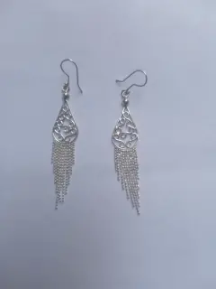 Aretes. Es ligero, color plata, mide 7 CM de largo, es nueva sin etiqueta