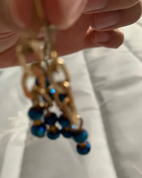 Aretes colgantes cortos, dorado con azul, muy lindos y elegantes