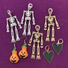 Aretes calacas plata💀💜✨Largo 8cmExtremidades movibles 👌🏽Brillan precioso 💜✨
