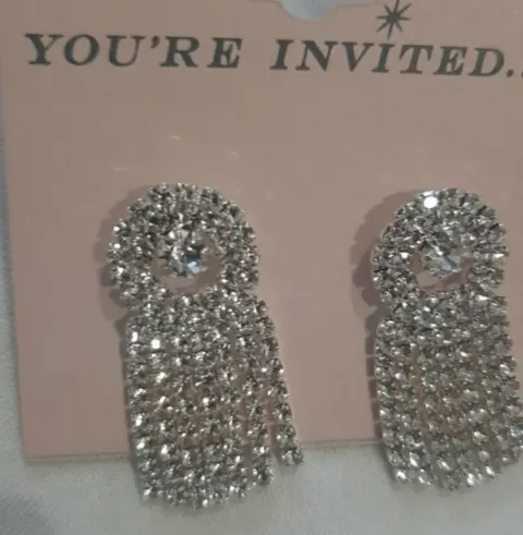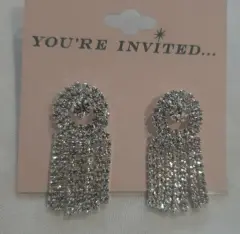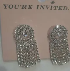 Aretes de fiesta. Aretes colgantes con piedras blancas y bade plateada. Nuevos. Ideales para eventos formales.