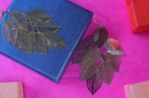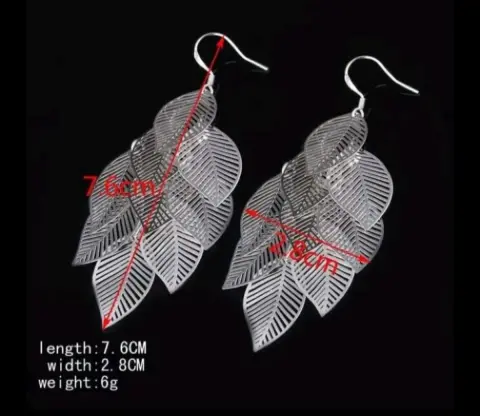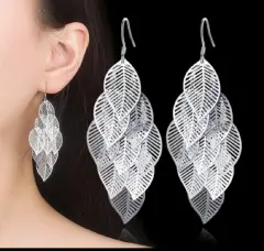 Lindos aretes largos de hojitas, bañados en plata, están completamente nuevos.