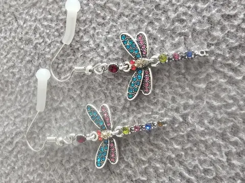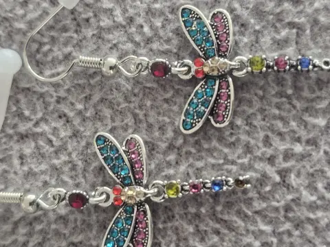 ARETES DE LIBELULA. Aretes de libélula. Cuentan con movimiento en la colita y cabeza.Material: Metal con pedrería.Tamaño: 3 cm de largoSe entregan en bolsa de organza tipo costalito.Ideales para regalo 🎁Si te gusta alguna otra pieza de mi colección, te puedo armar un paquete 😉