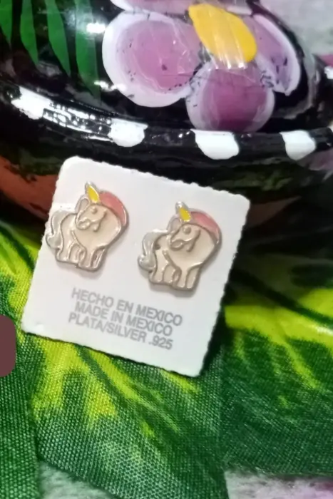 Hermosos aretes de plata .925 en forma de unicornio totalmente nuevos