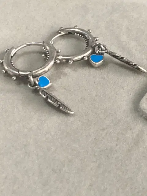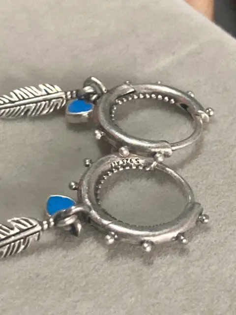 Aretes de plumas Pandora. Aretes de plumas y corazón azules Pandora En plata s925ALEEnvío con caja