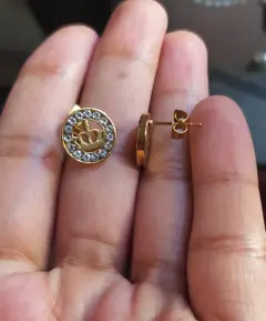 Hermosos aretes dorados de acero inoxidable con aplicaciones de piedras brillosas, no se manchan, no se oxidan y no se rayan. Completamente nuevos.Si te agrada alguna otra prenda de mi clóset, podemos negociar el precio.
