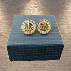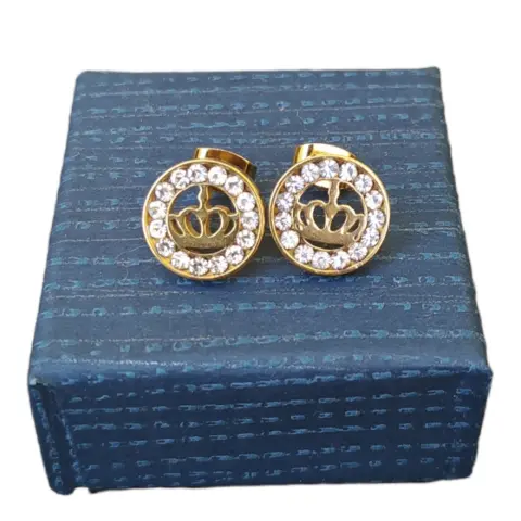 Aretes dorados de acero inoxidable forma de corona. Hermosos aretes dorados de acero inoxidable con aplicaciones de piedras brillosas, no se manchan, no se oxidan y no se rayan. Completamente nuevos.Si te agrada alguna otra prenda de mi clóset, podemos negociar el precio.