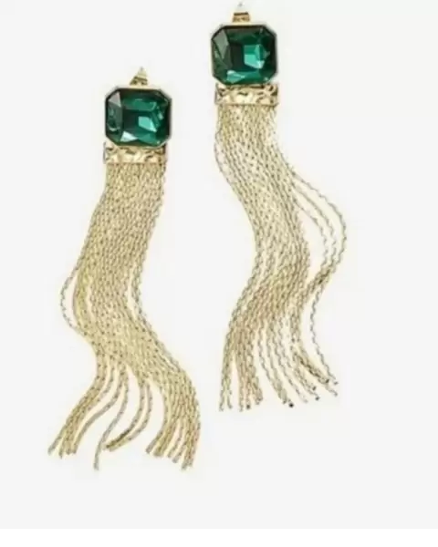 Aretes elegantes con piedra verde. Joyería, material metal, piedra de cristal y niquel anti alérgico. Lucen Divinos y elegantes!Son largos.Largo x ancho: 99 mm x 20 mmDiámetro: 15 mm