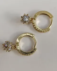 Aretes Esfera Brillantes. Aretes tipo huggies de y mini hoops de oro laminado con pedrería.