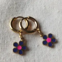 2 pares de Hermosos aretes casuales acero inoxidable , broche huggies , hipoalergénico, 1.5 cm de largo.Están hermosos para una niña o jovencita.1 con diseño flor y 1 con diseño pretzel