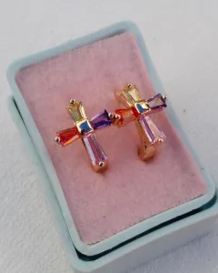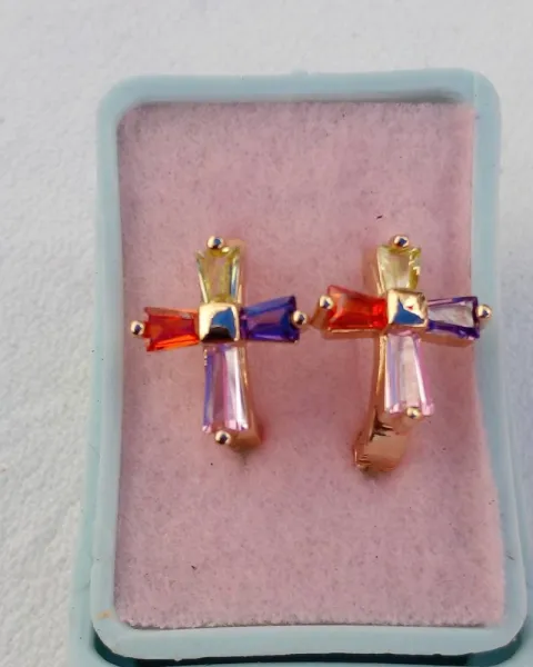 Aretes huggies oro laminado. Aretes huggies de oro laminado y zirconias de colores ¡Preciosos!