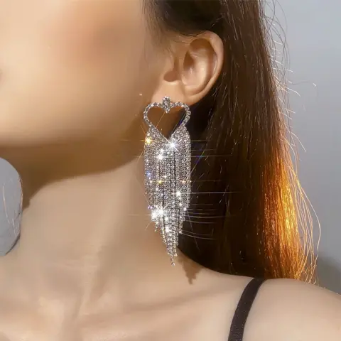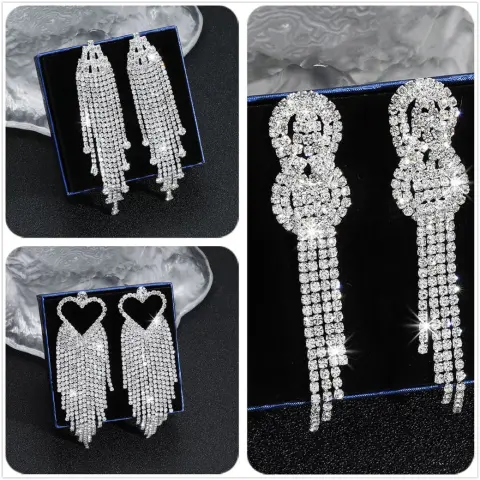 Aretes largos de diamantes. Ideal para evento social.Diamantes de imitación.