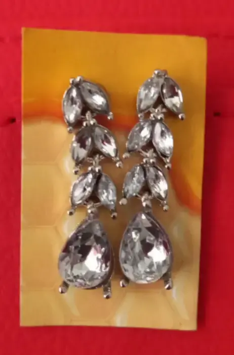 Aretes largos traslúcidos. Aretes hechos a mano, largos con pedrería de cristal. Plata sobre aleación de metales. Con broche de mariposa