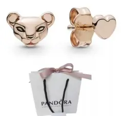 Aretes leona Pandora. Artes de plata Pandora con recubrimiento de oro rosa
