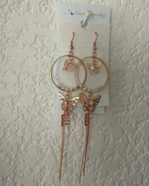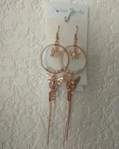 Aretes mariposa. Aretes largos de Mariposa con decoraciones de piedras brillantes.