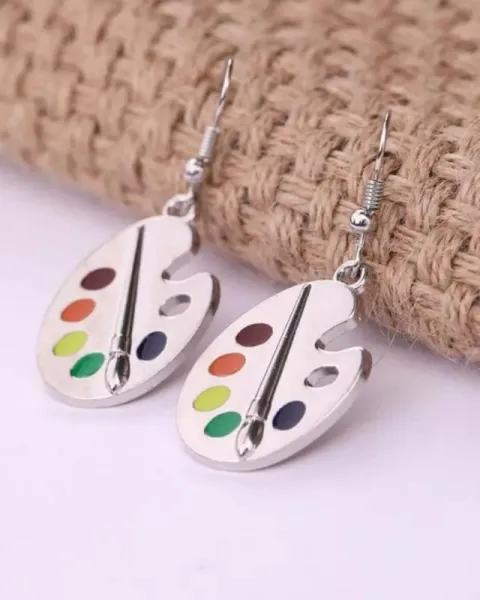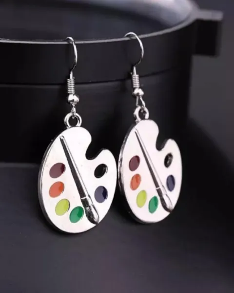 Aretes paleta de artista. Aretes paleta de artista • arillo de plata y dije de acero inoxidable • nuevos • ♡