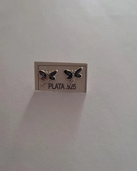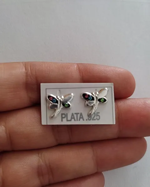 Aretes plata.925 ley. Aretes libélula, plata.925 ley garantizada. Con palomita atrás. Aproximadamente 1mm de alto.